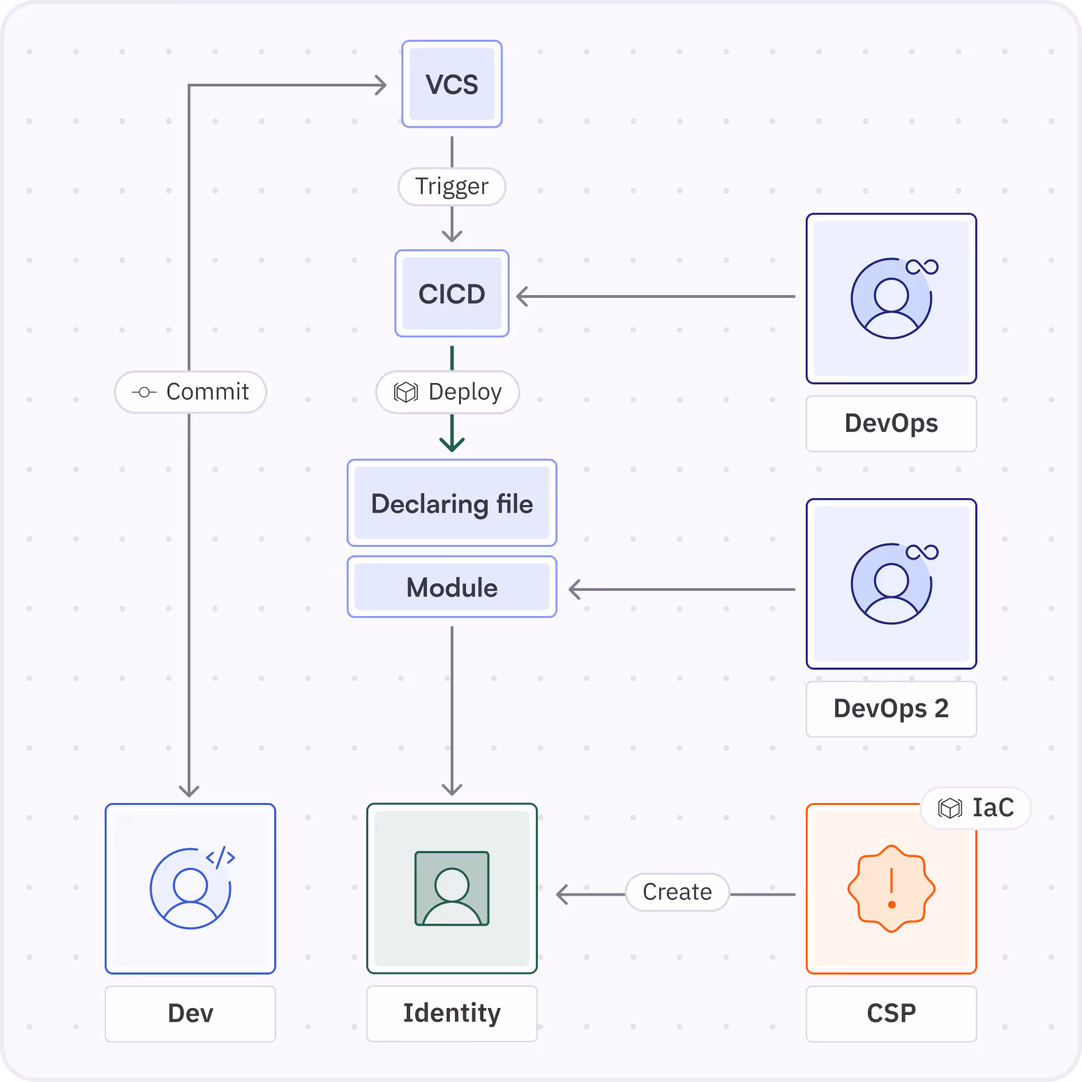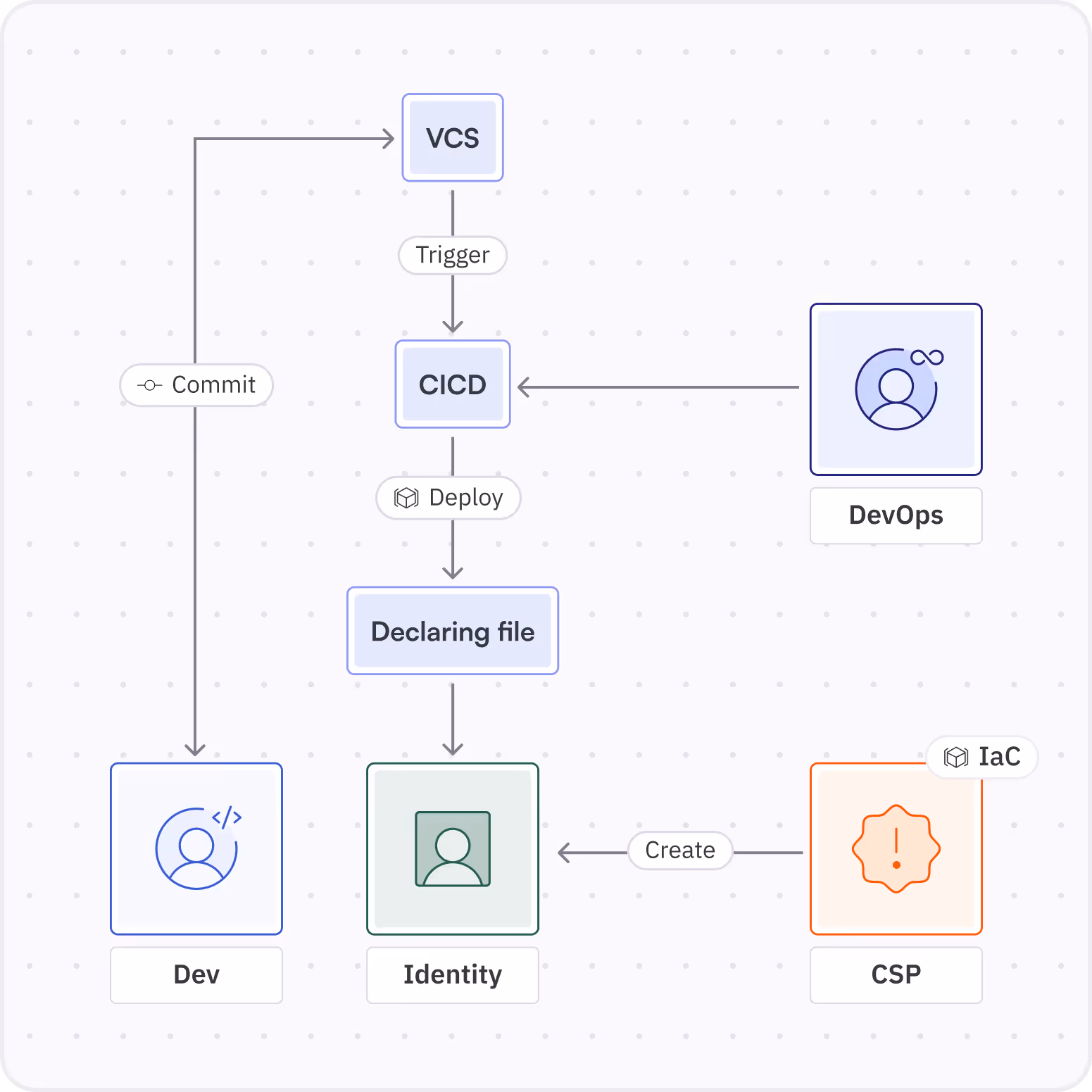 When it comes to IaC, the code is an integral part of the identity. Whoever wrote the declaring lines for a new role is de facto the creator of the identity.