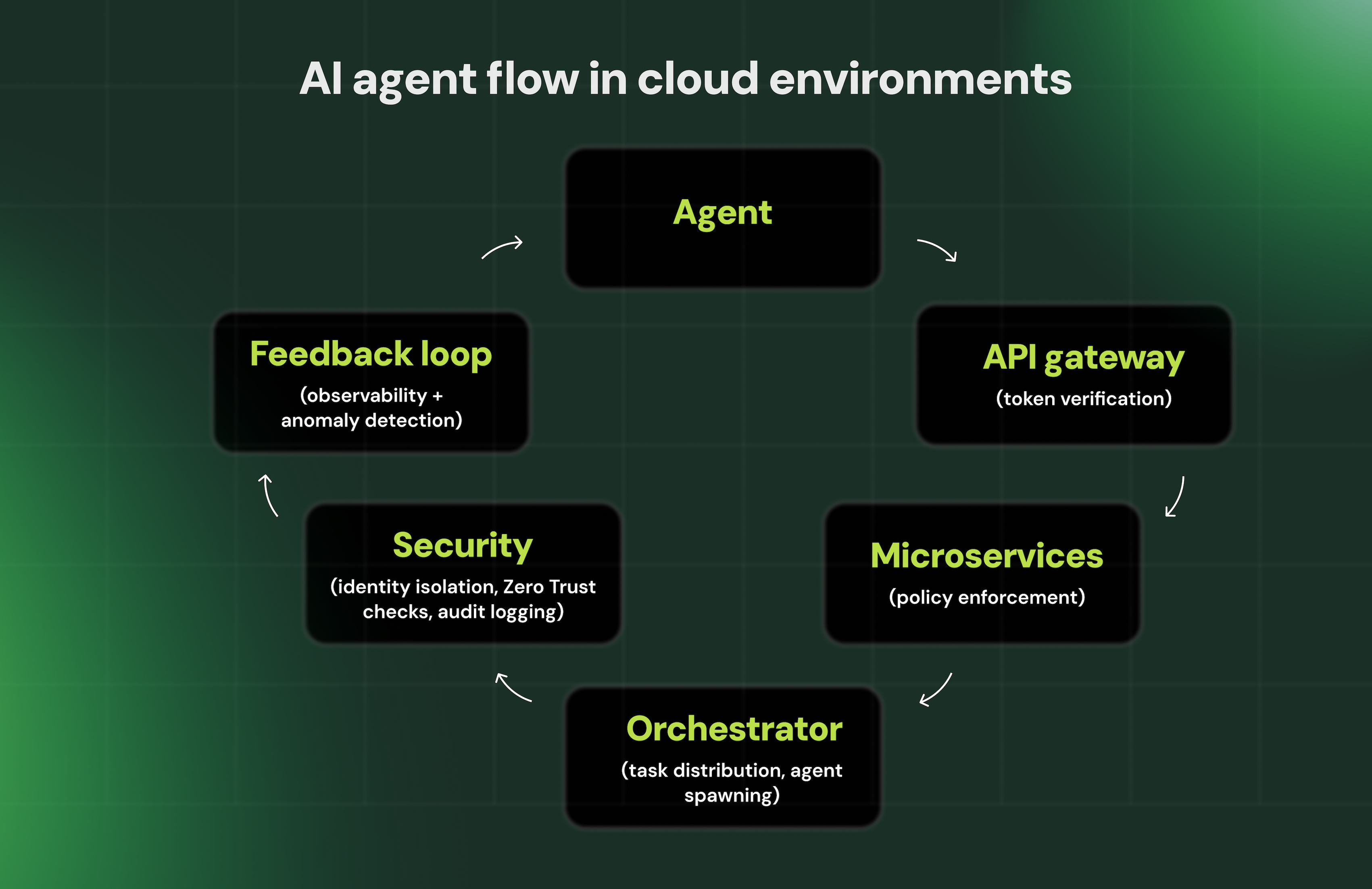 Cloud-native architectures rely on microservices, serverless functions, containers, and event-driven services to power multi-agent orchestration. In these environments, agents don't operate in isolation. Instead, they continuously communicate across layers of compute, storage, networking, and APIs.