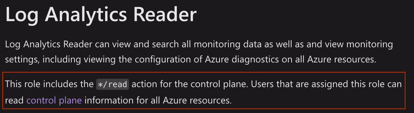 If we analyze the actions property, we can see that as the description states, it grants read permissions to a few workbook-related objects. So a service-specific role that grants access to a specific service! So far so good.