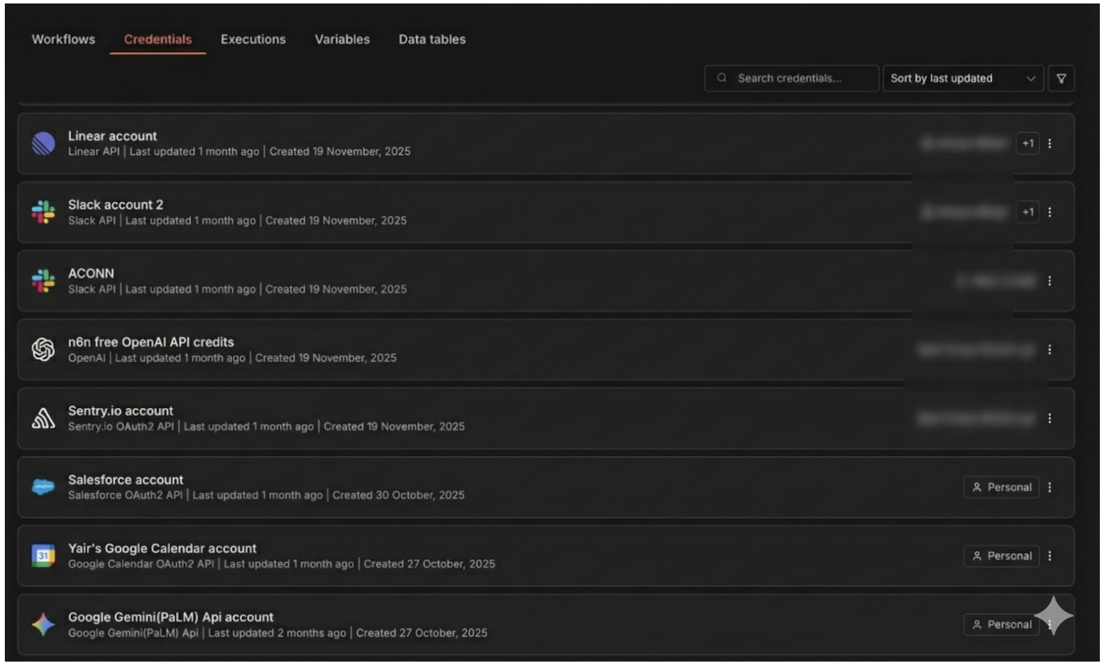 When we analyzed customer environments, we found that a single n8n deployment typically connects to dozens of services: AWS accounts, GCP projects, databases, SaaS applications, and internal APIs. Each connection requires credentials, and n8n stores those credentials so the instance can use them.