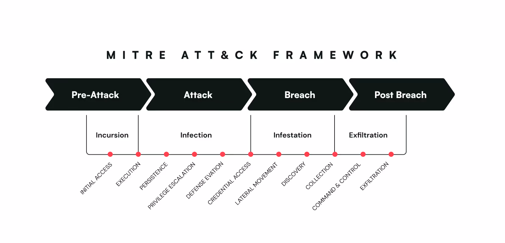 - Impact - attackers cause harm to disrupt operations or destroy data.